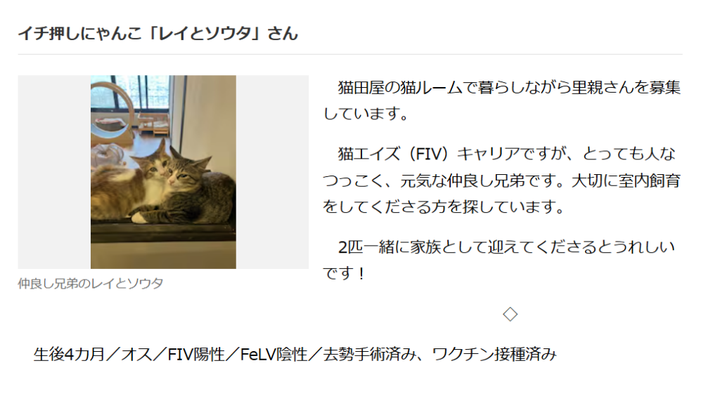 里親募集中の兄弟猫のことも載ってます!良きご縁をお待ちしています。