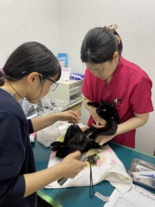 ある現場に捨てられていたという高齢の猫さんが、健康診断に連れてこられた際の一コマ。